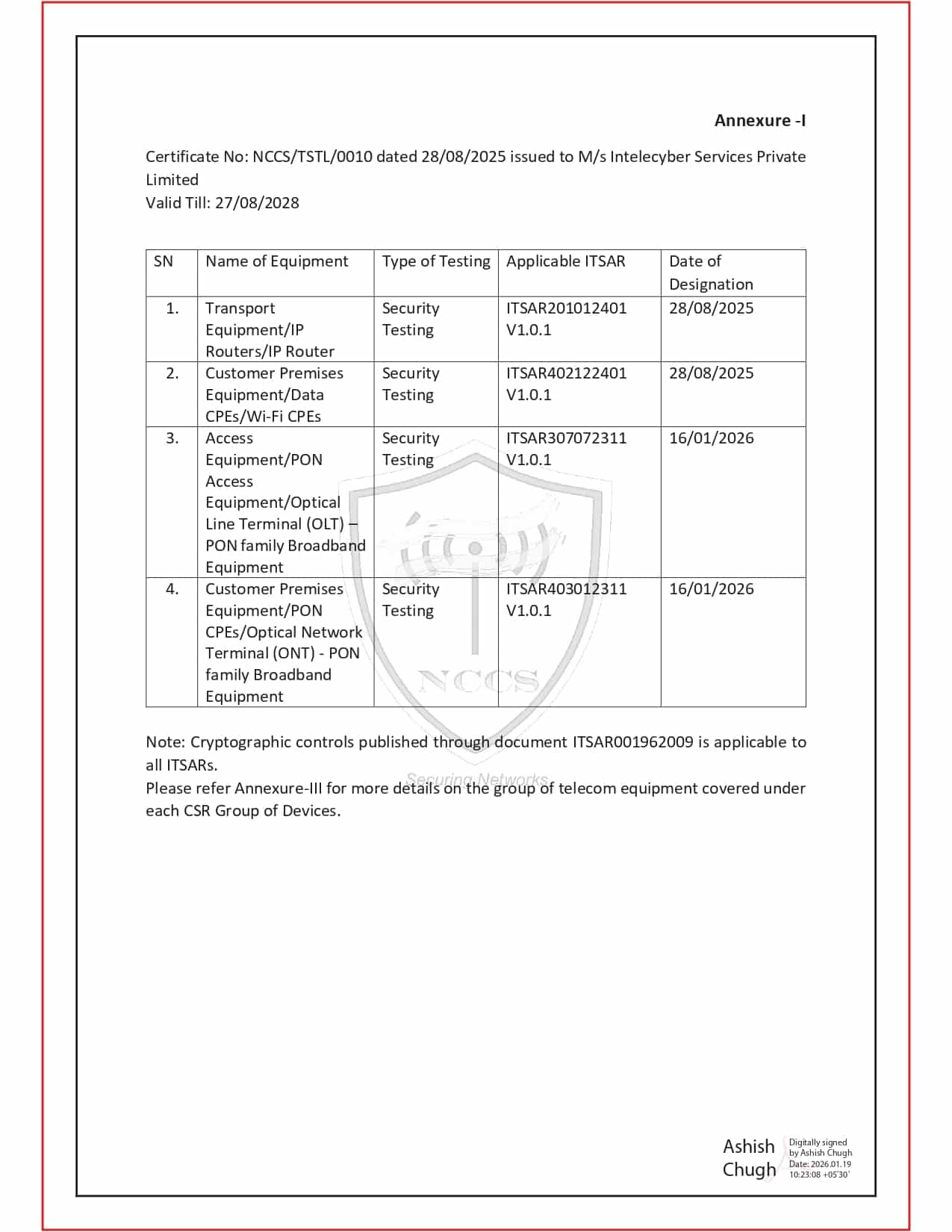 InTeleCyber Designated as NCCS Telecom Security Testing Laboratory